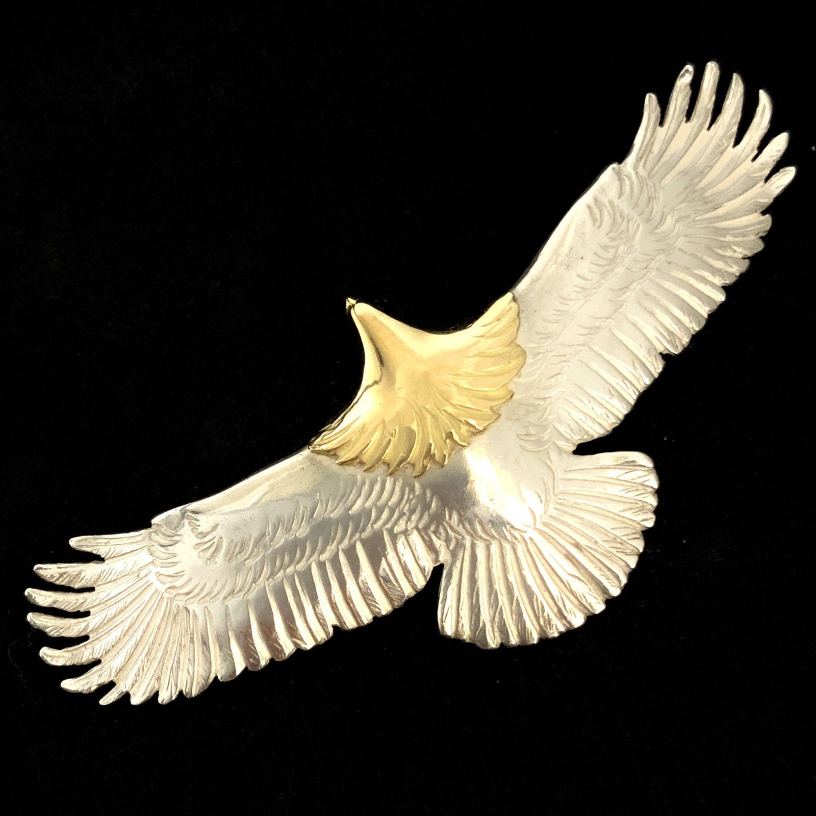 With wings crafted in fine silver and golden accents that highlight the majesty of this king of the skies, this pendant is for those who aim high and dream big.
