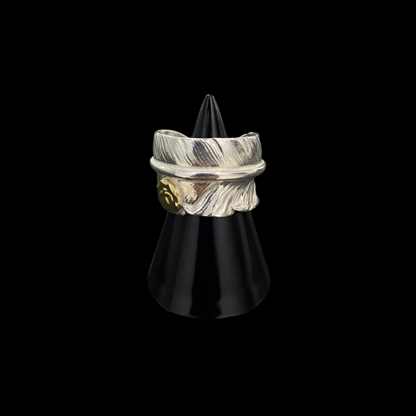 Step into the contemporary world with the Goros Feather Ring in silver and gold. This design, with its dual-tone metal, is a contemporary twist on the classic feather motif.
